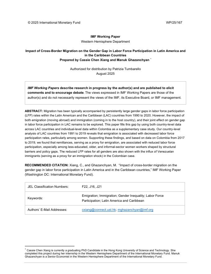 国际货币基金组织:跨境移民对拉丁美洲和加勒比国家劳动力参与性别差距的影响(英文版).pdf