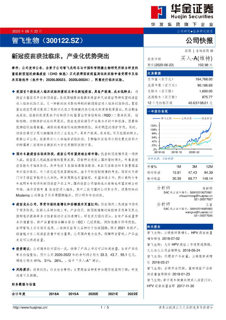 华金证券:智飞生物(300122)-新冠疫苗获批临床,产业化优势突出.pdf