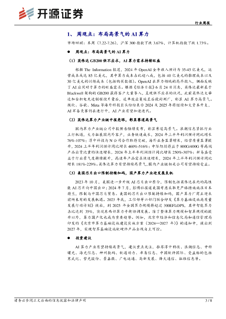 开源证券:计算机行业周报:周观点:布局高景气的AI算力.pdf