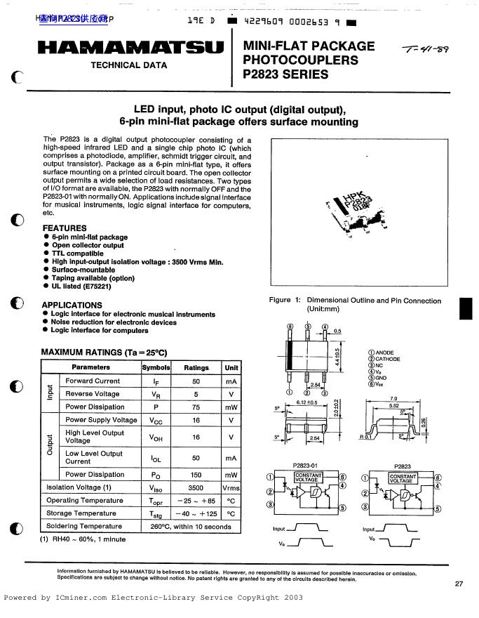 HAMAMATSU P2823 SERIES 数据手册.pdf
