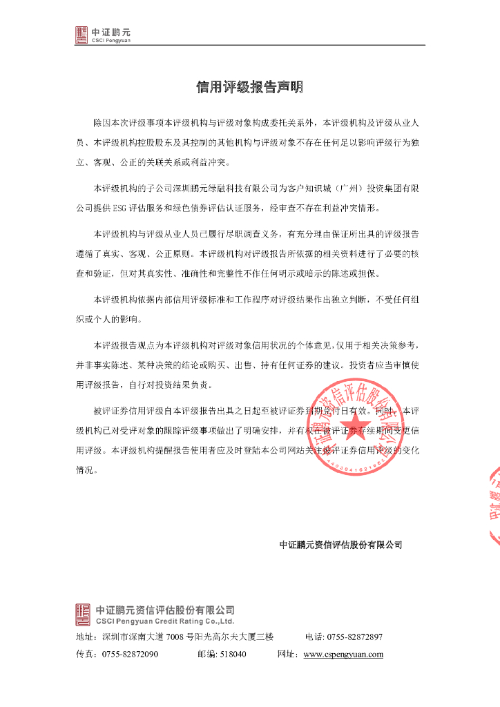 鹏元:知识城(广州)投资集团有限公司2022年度第三期中期票据信用评级报告.pdf