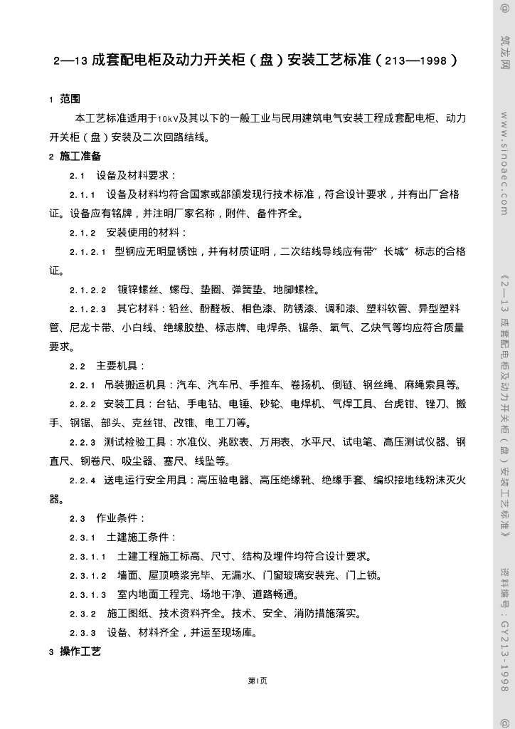成套配电柜及动力开关柜(盘)安装工艺标准.pdf