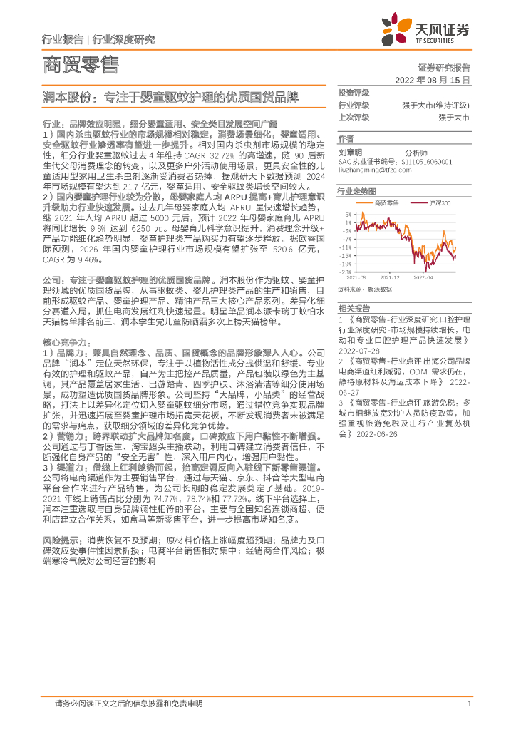 天风证券:商贸零售行业深度研究:润本股份:专注于婴童驱蚊护理的优质国货品牌.pdf