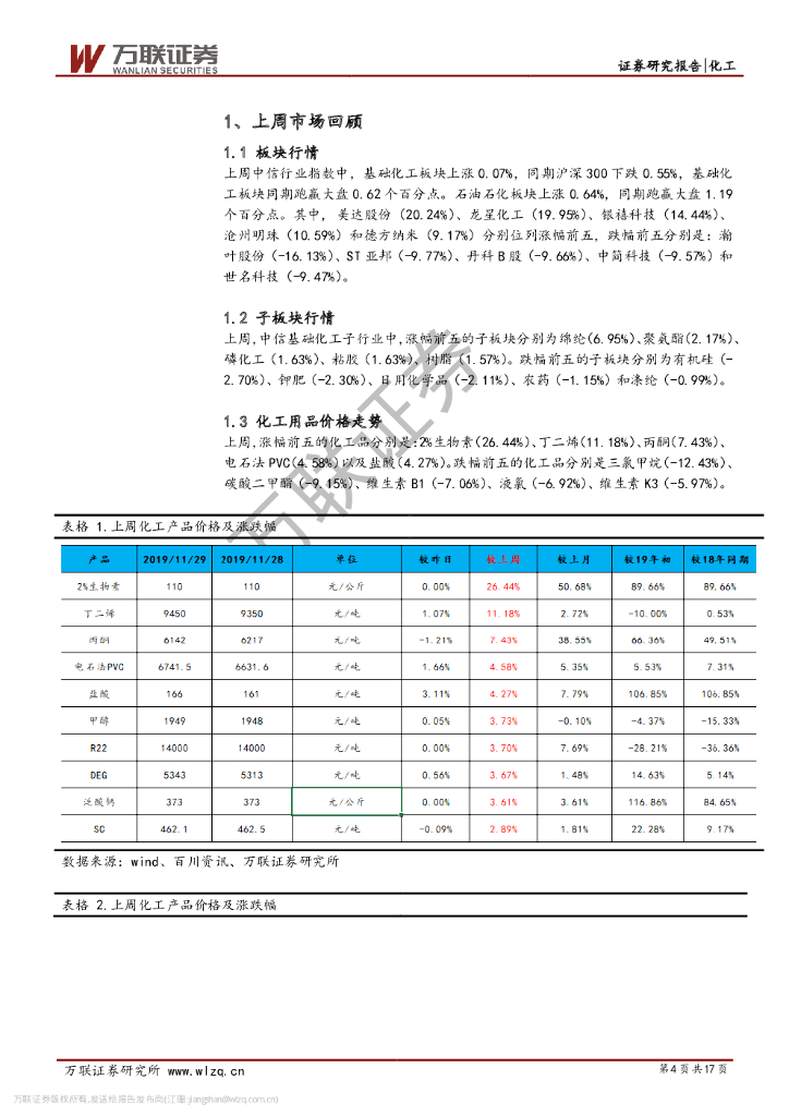 万联证券:化工行业周观点:生物素、丙酮价格趋势不改,三氯甲烷领跌.pdf