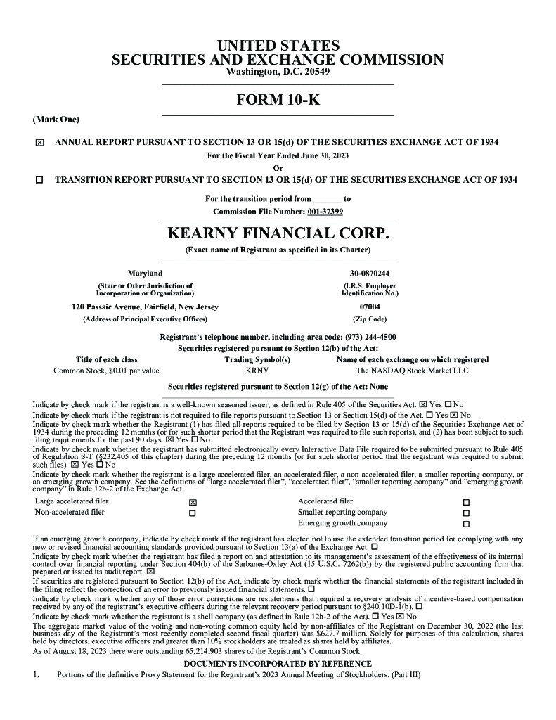 Kearny Financial Corp.(KRNY)2023财年年度报告(英文版).pdf