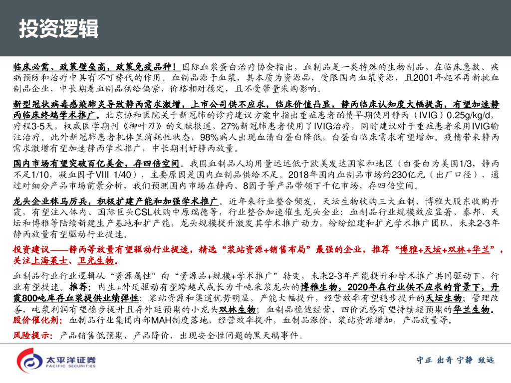 太平洋证券:【深度探讨系列】——血制品:四倍行业,精选龙头.pdf