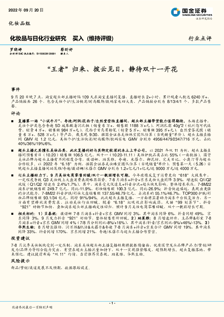 国金证券:化妆品与日化行业研究:“王者”归来、拨云见日,静待双十一开花.pdf