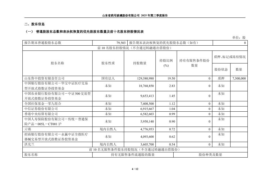 600529-山东药玻:山东省药用玻璃股份有限公司2025年第三季度报告.pdf