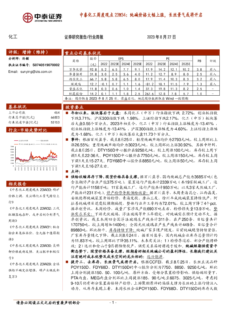 中泰证券:中泰化工周度观点23W34:纯碱价格大幅上涨,长丝景气或将开启.pdf