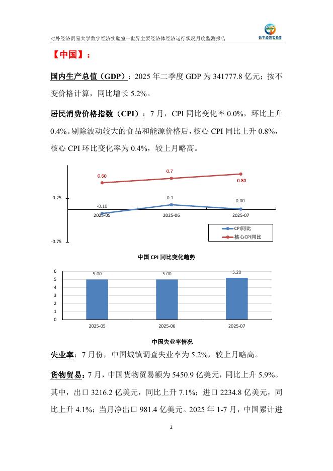 对外经济贸易大学:世界主要经济体经济运行状况月度监测报告(2025年7月).pdf