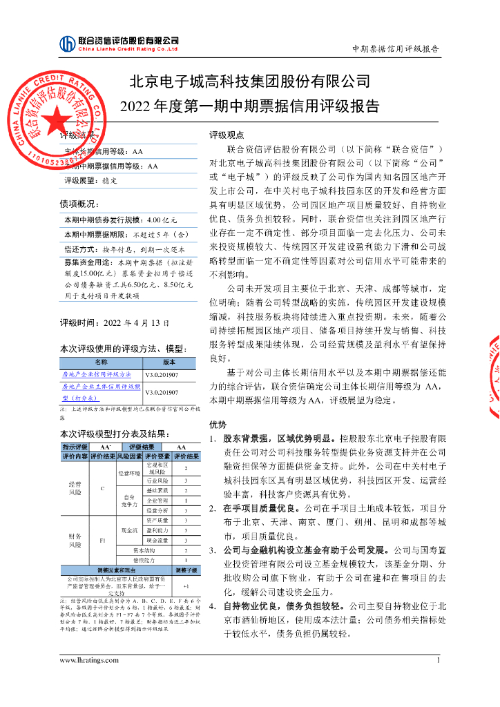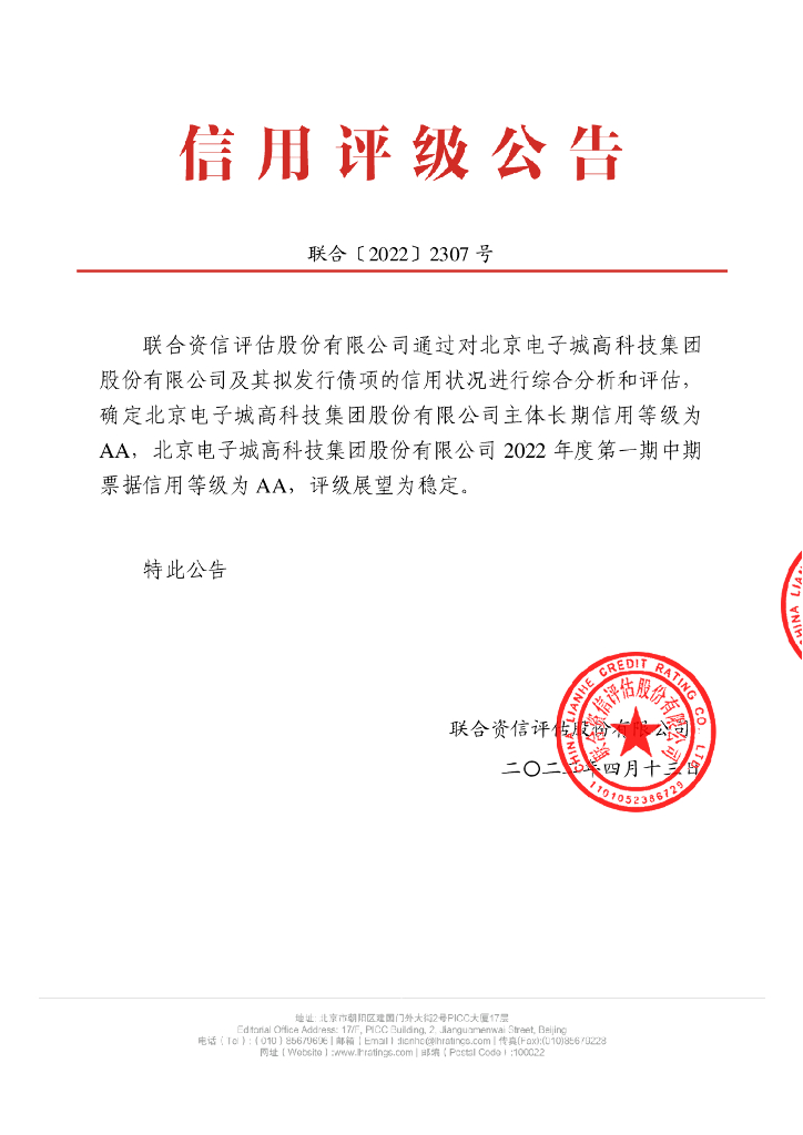 联合资信:北京电子城高科技集团股份有限公司2022年度第一期中期票据信用评级报告.pdf