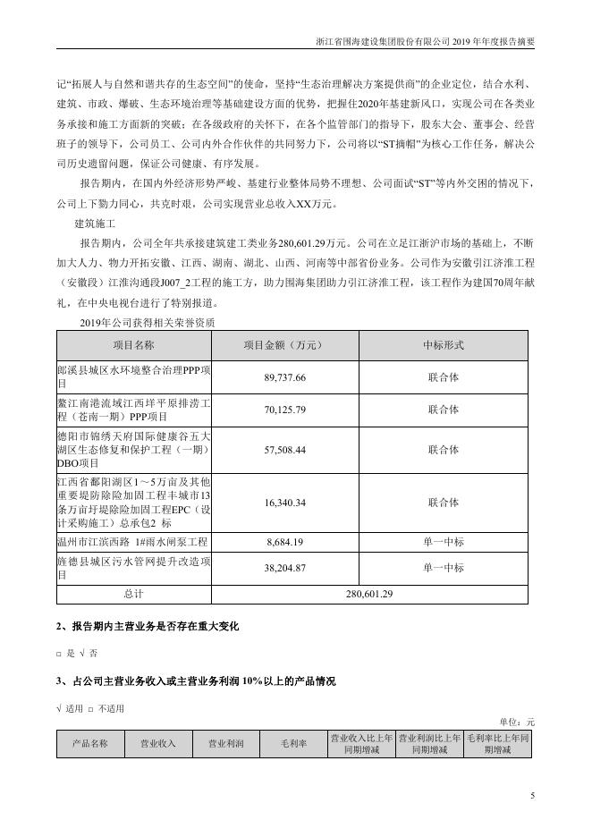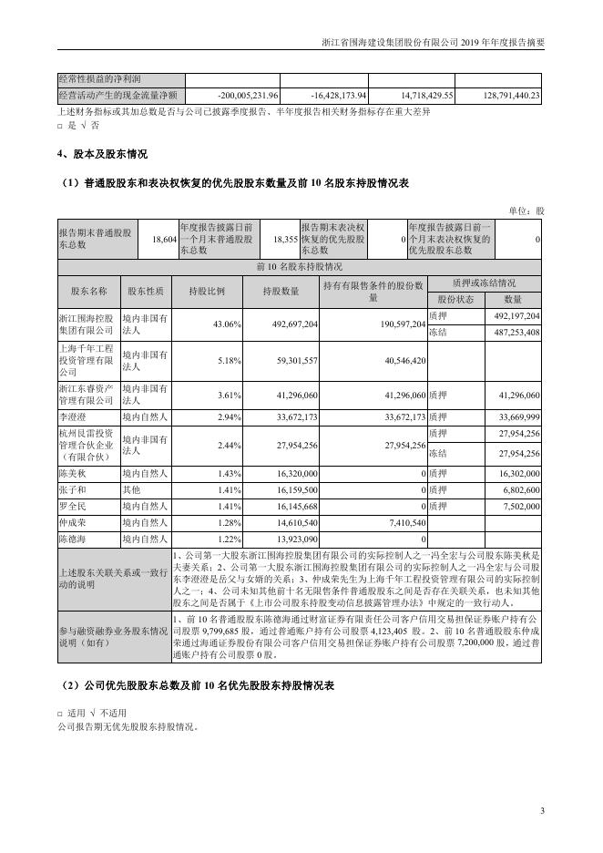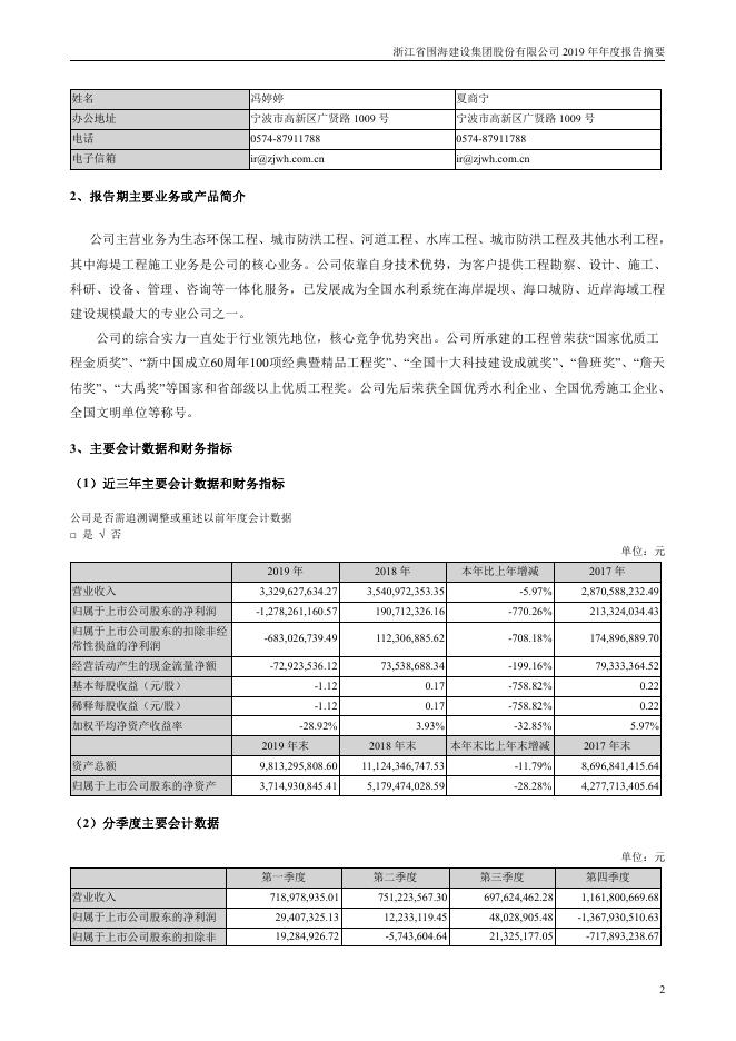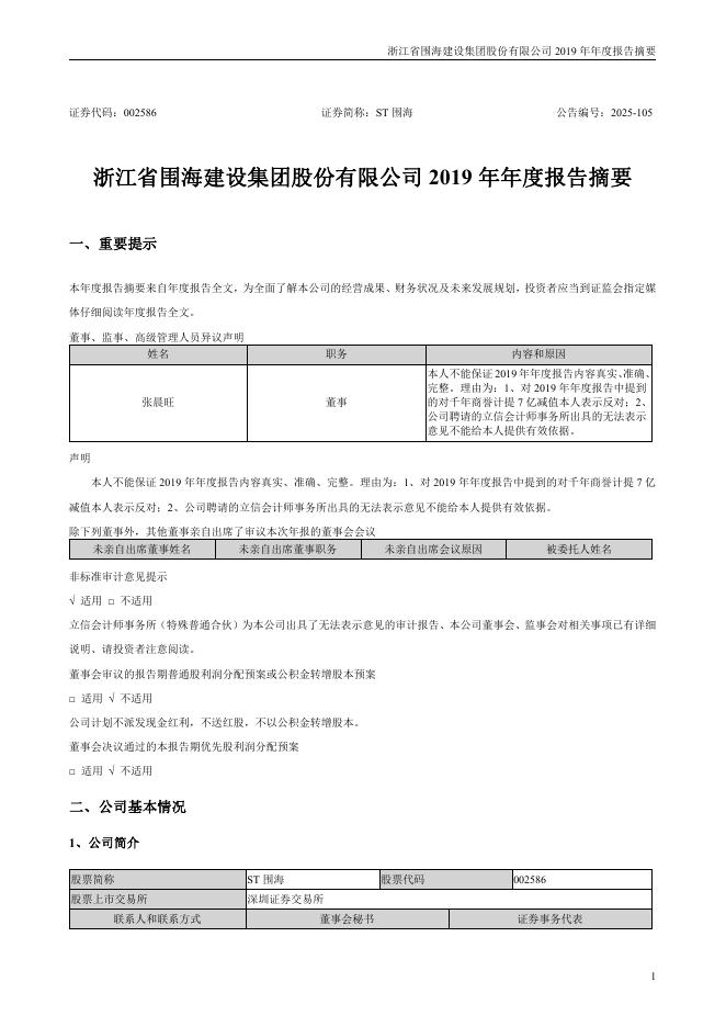 002586-*ST围海:2019年年度报告摘要.pdf