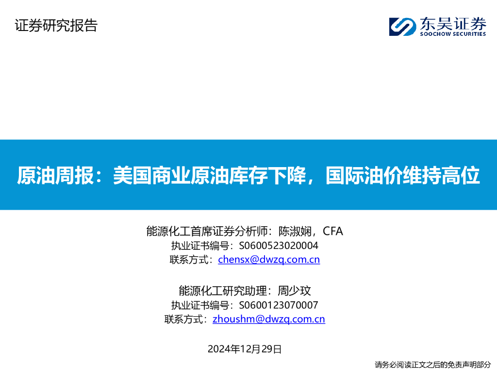 东吴证券:原油周报:美国商业原油库存下降,国际油价维持高位.pdf