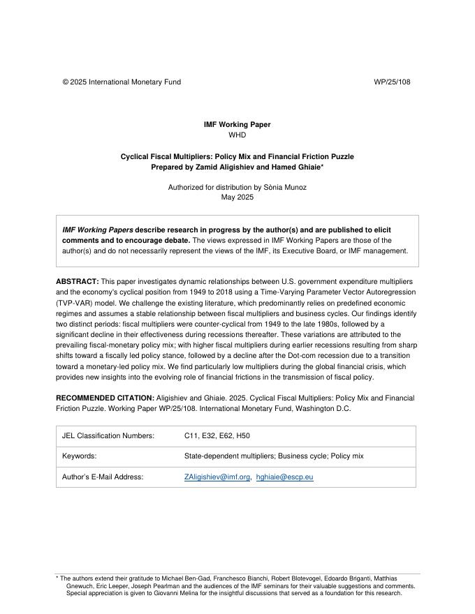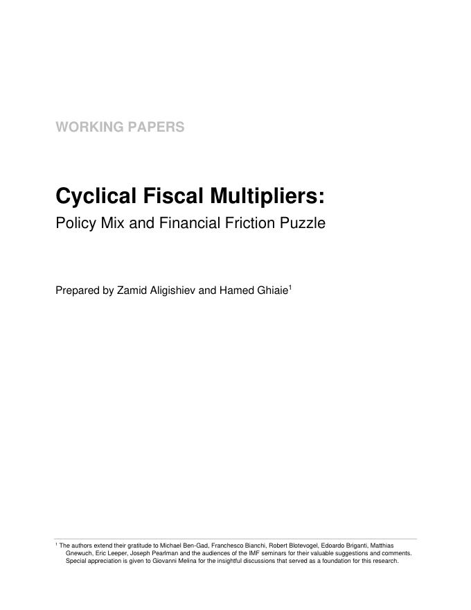 国际货币基金组织:周期性财政乘数:政策组合与金融摩擦之谜(英文版).pdf