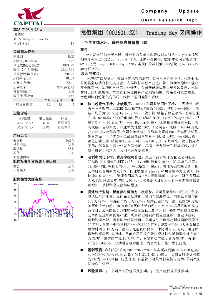 群益证券:龙佰集团(002601)-上半年业绩承压,静待钛白粉价格回暖.pdf