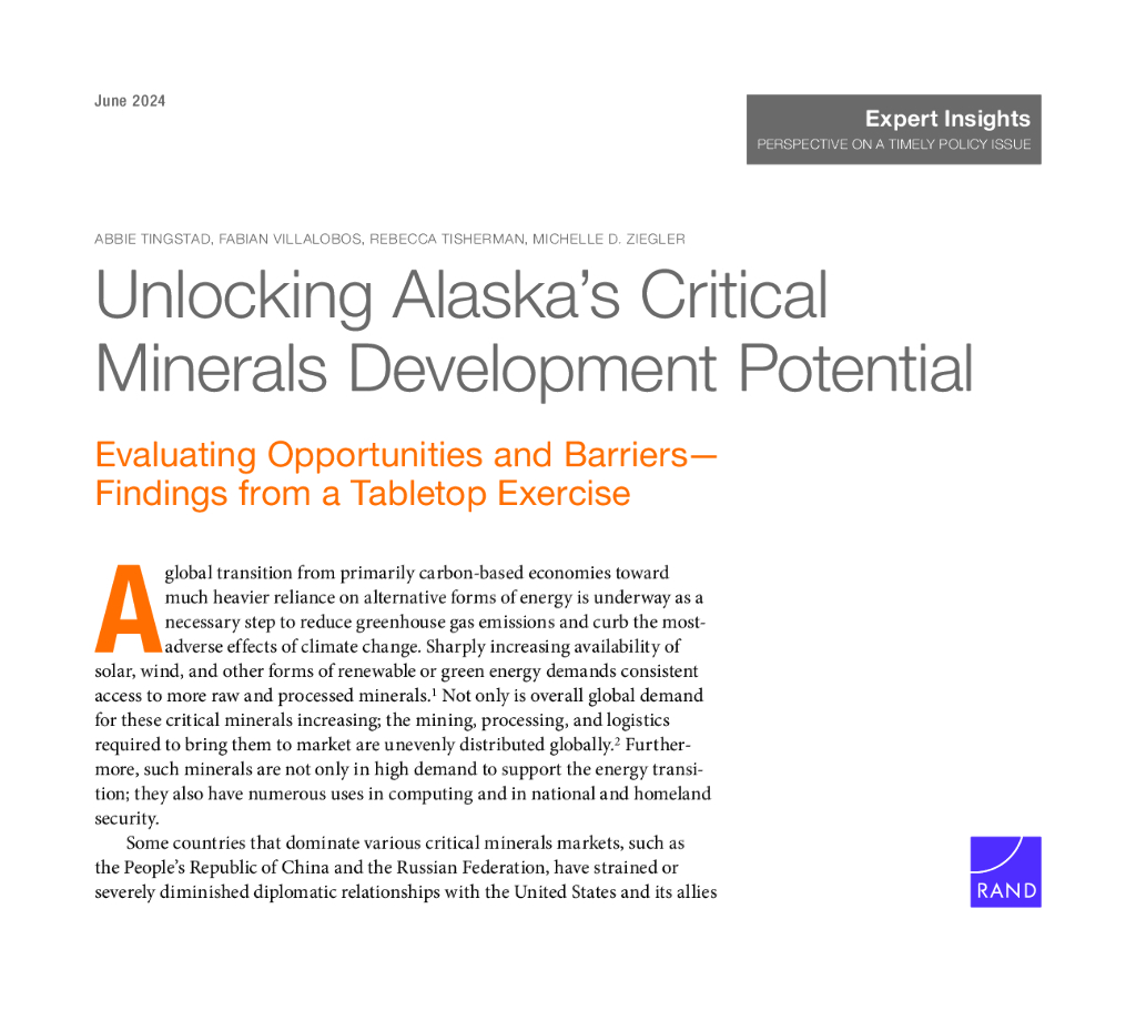 Rand兰德:2024释放阿拉斯加的关键矿产开发潜力评估机会和障碍报告:桌面练习的结果(英文版).pdf