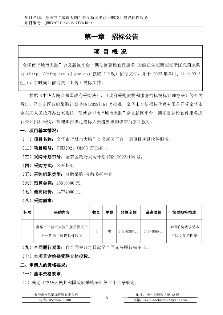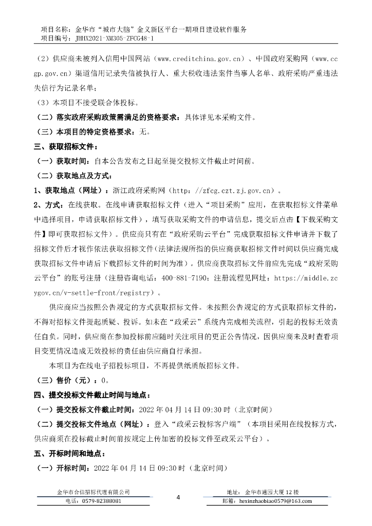金华市“城市大脑”金义新区平台一期项目建设软件服务招标文件.pdf