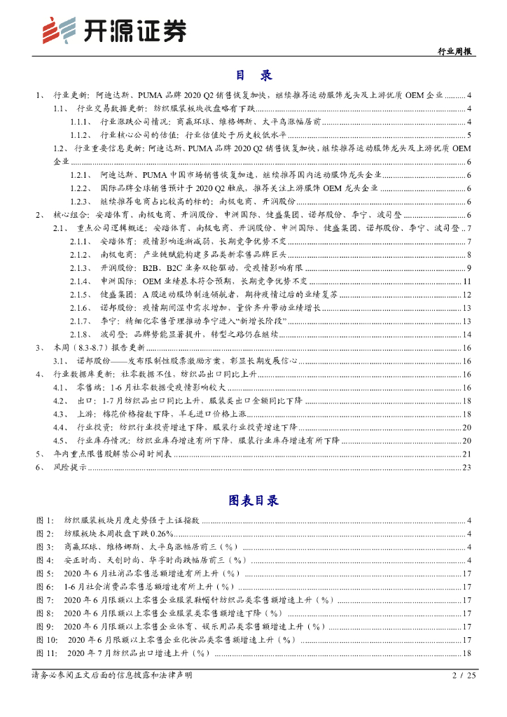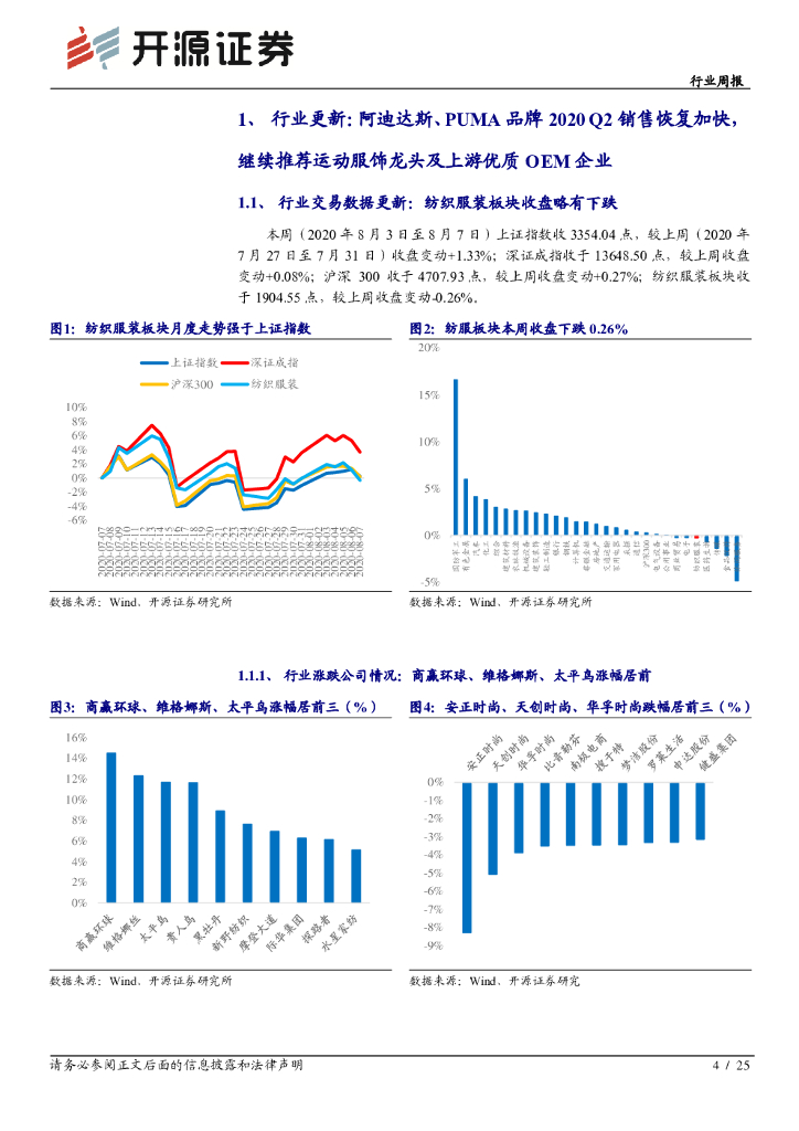 开源证券:纺织服装行业周报:阿迪达斯、PUMA 2020 Q2销售恢复加快,继续推荐运动服饰龙头及上游优质 OEM 企业.pdf