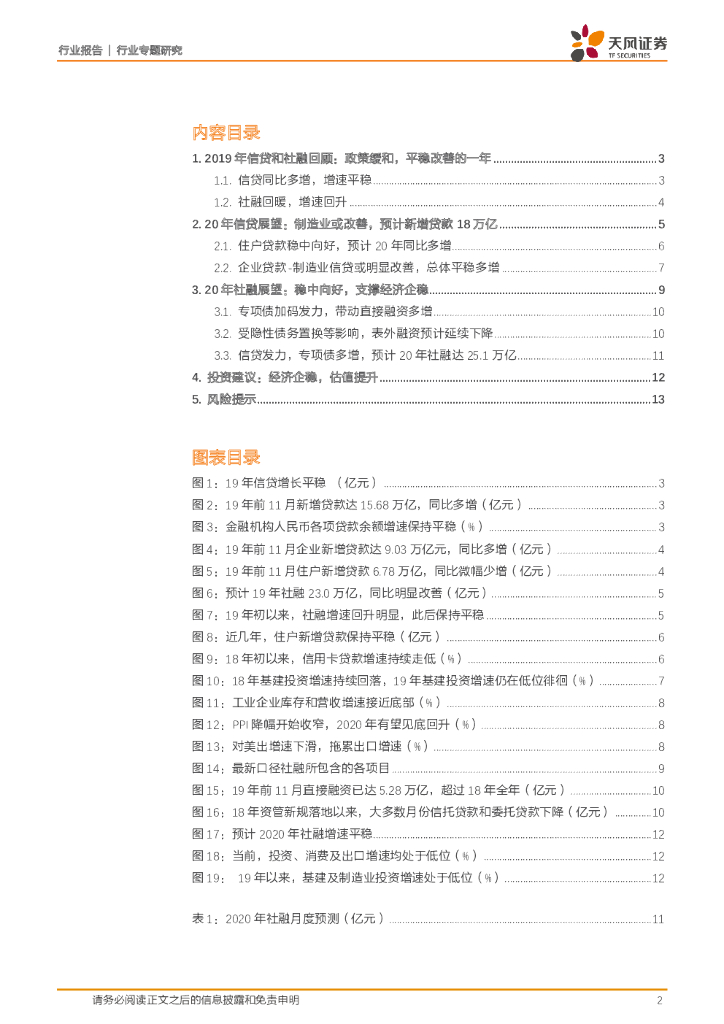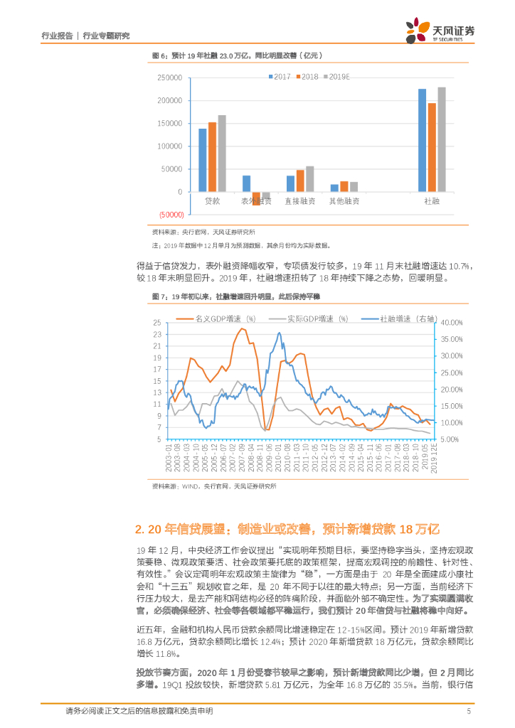 天风证券:银行行业专题研究:2020年信贷与社融展望:稳中向好.pdf