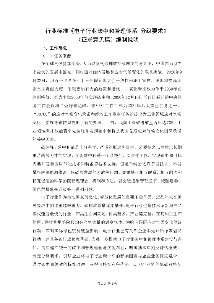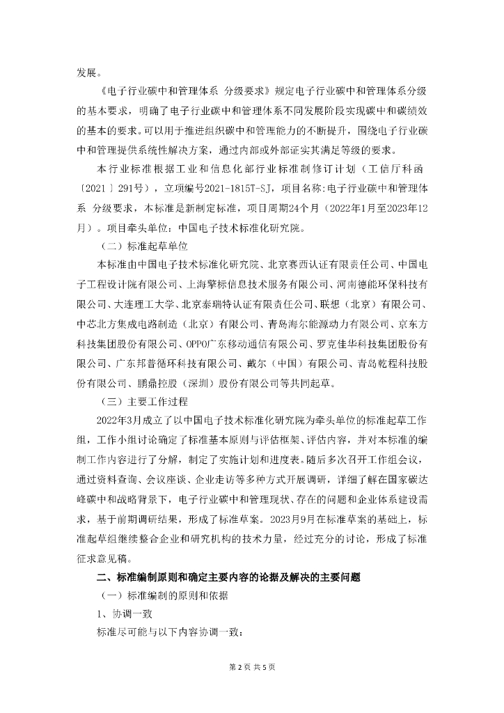 《电子行业碳中和管理体系 分级要求》(征求意见稿编制说明).doc