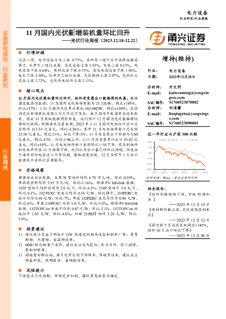 甬兴证券:光伏行业周报:11月国内光伏新增装机量环比回升.pdf