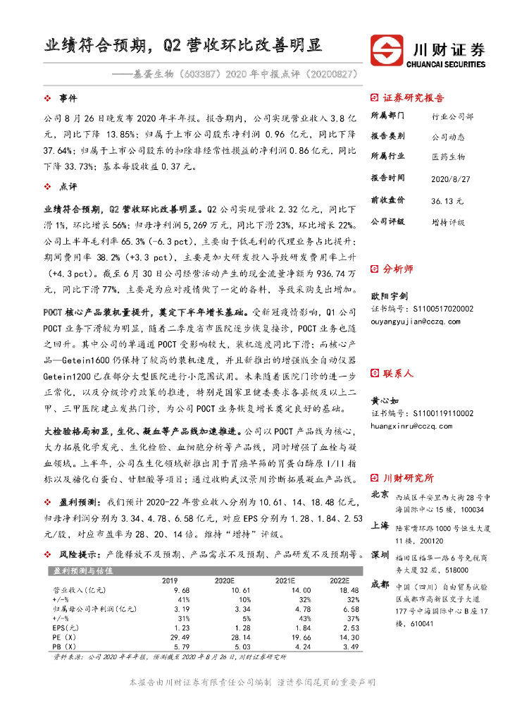 川财证券:基蛋生物(603387)-2020年中报点评:业绩符合预期,Q2营收环比改善明显.pdf