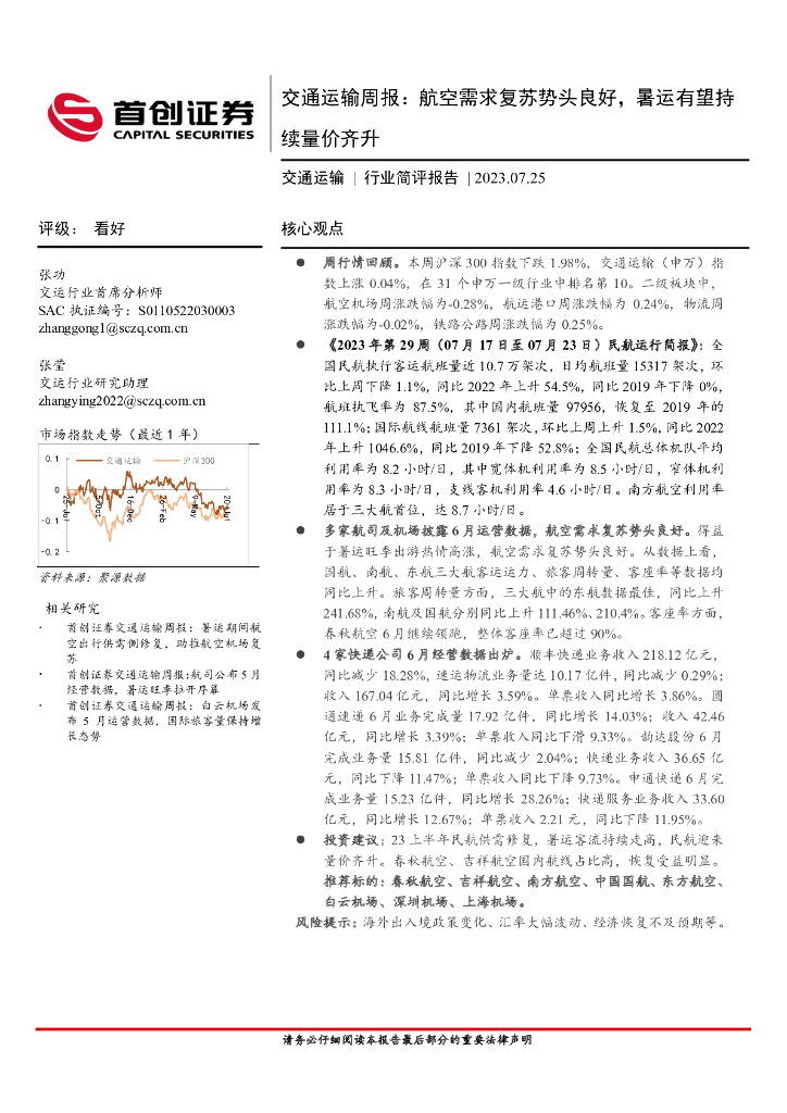首创证券:交通运输周报:航空需求复苏势头良好,暑运有望持续量价齐升.pdf