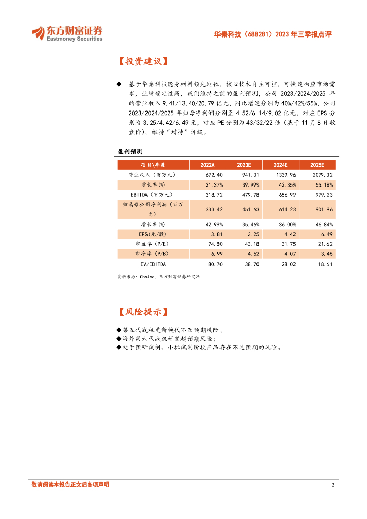 东方财富证券:华秦科技(688281)-2023年三季报点评:旺盛需求助推营收高增,隐身材料前景广阔.pdf