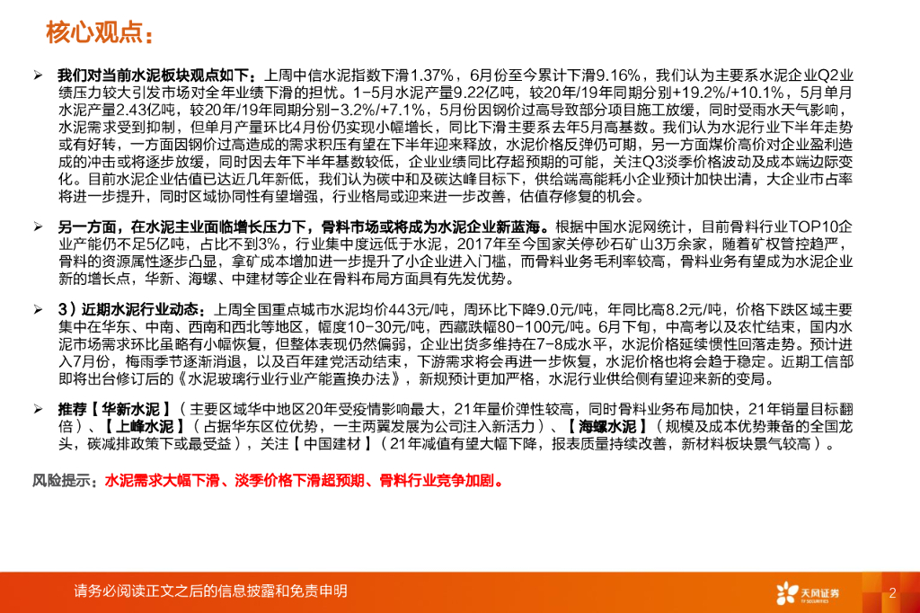 天风证券:水泥制造行业研究周报:需求环比小幅恢复,价格延续下滑.pdf