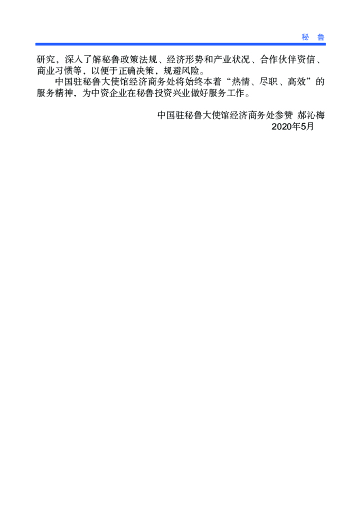 商务部:对外投资合作国别(地区)指南:秘鲁(2020年版).pdf