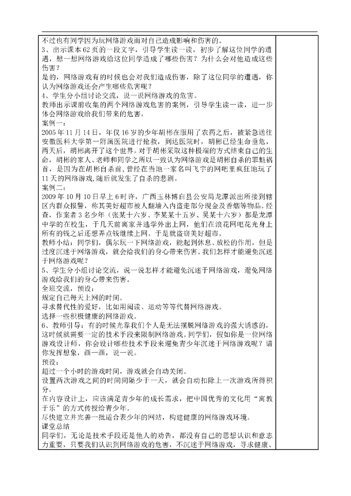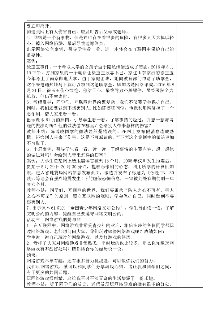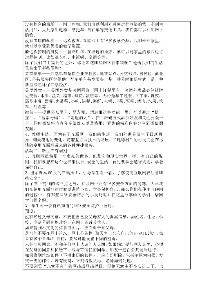 2021四年级上册 人教版小学道德与法治3.2 网络新世界 (表格式).doc