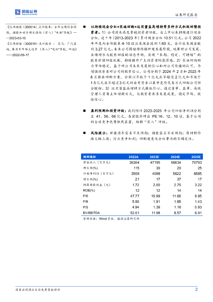 国海证券:亿纬锂能(300014)-点评报告:发布“质量回报双提升”行动方案,持续提升长期价值+积极回馈投资者.pdf