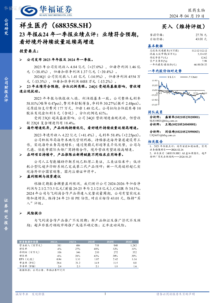 华福证券:祥生医疗(688358)-23年报&24年一季报业绩点评:业绩符合预期,看好境外持续放量延续高增速.pdf