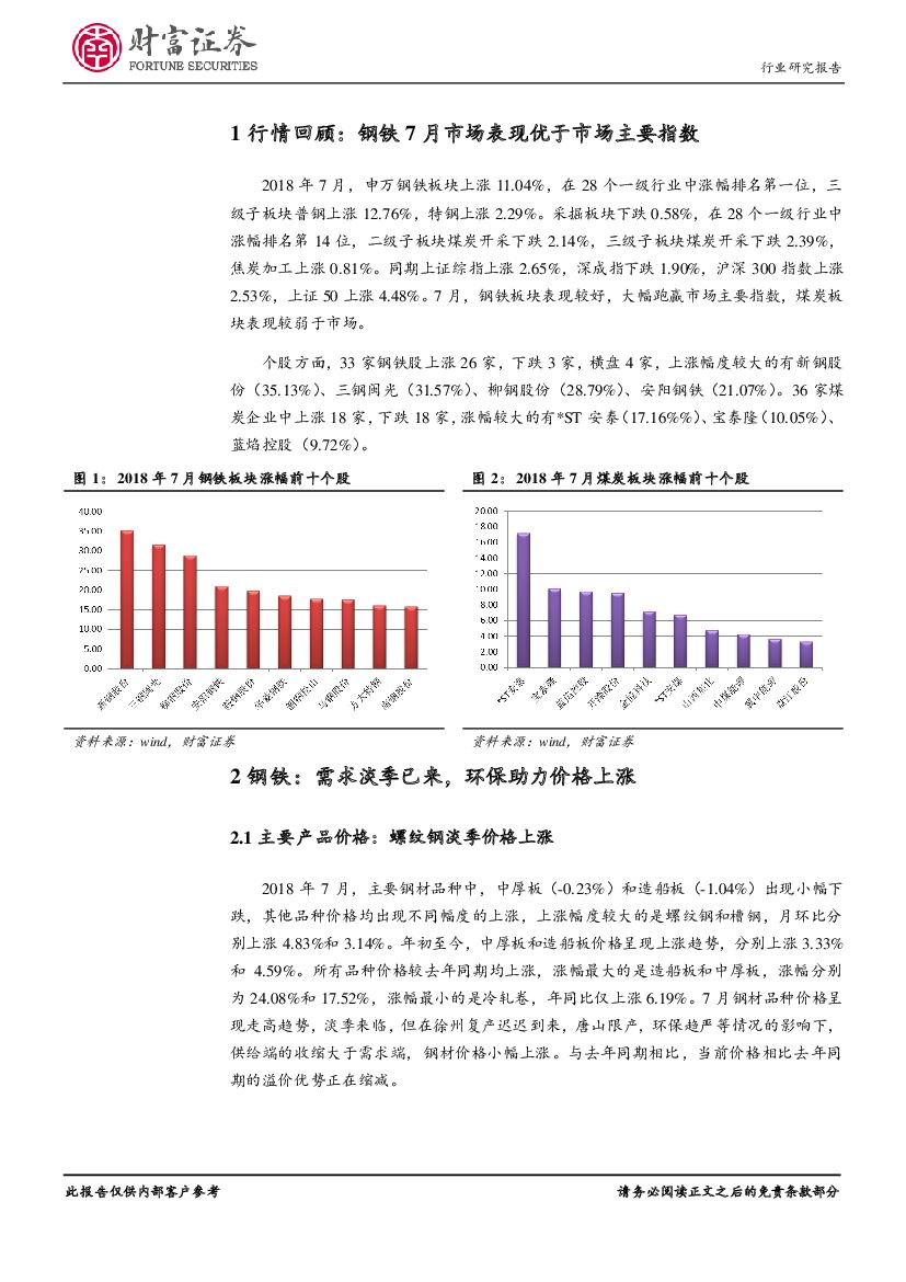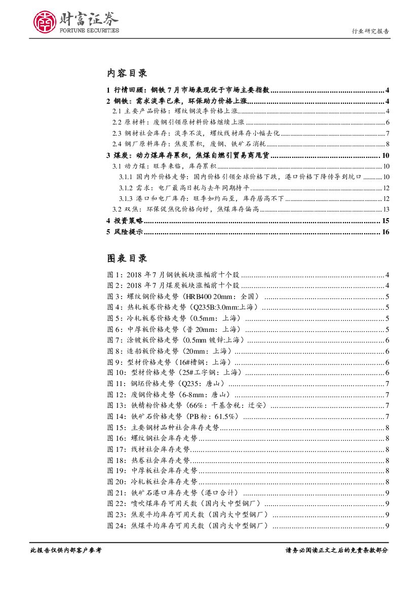 财富证券:钢铁行业月度报告:中报业绩向好预期逐步消化,环保影响下关注焦炭.pdf
