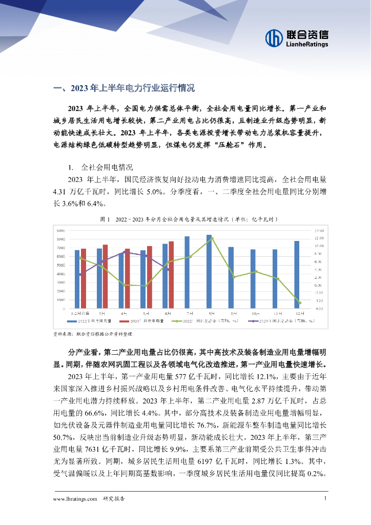 联合资信:2023年上半年电力行业信用风险总结与展望报告.pdf