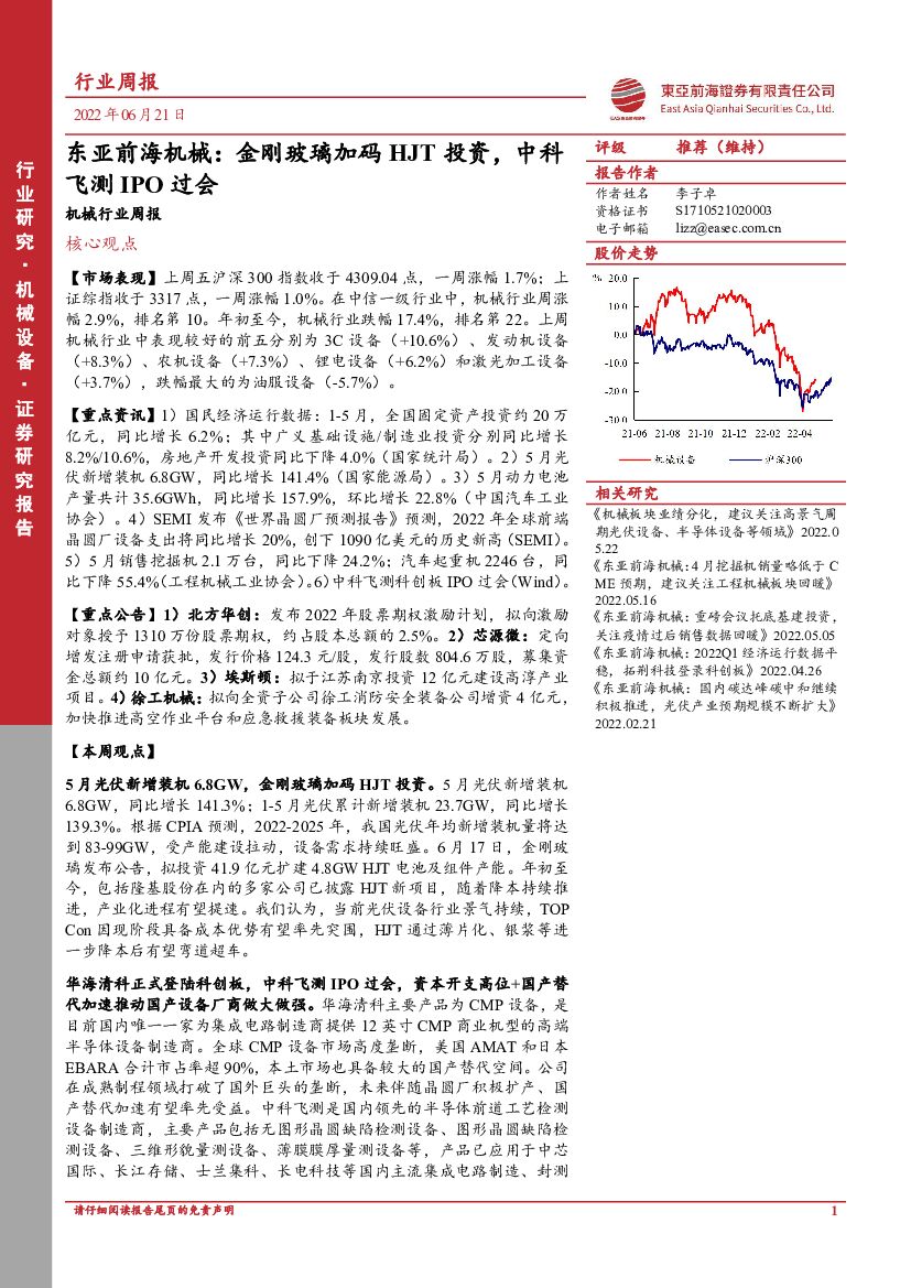 东亚前海证券:东亚前海机械:金刚玻璃加码HJT投资,中科飞测IPO过会.pdf