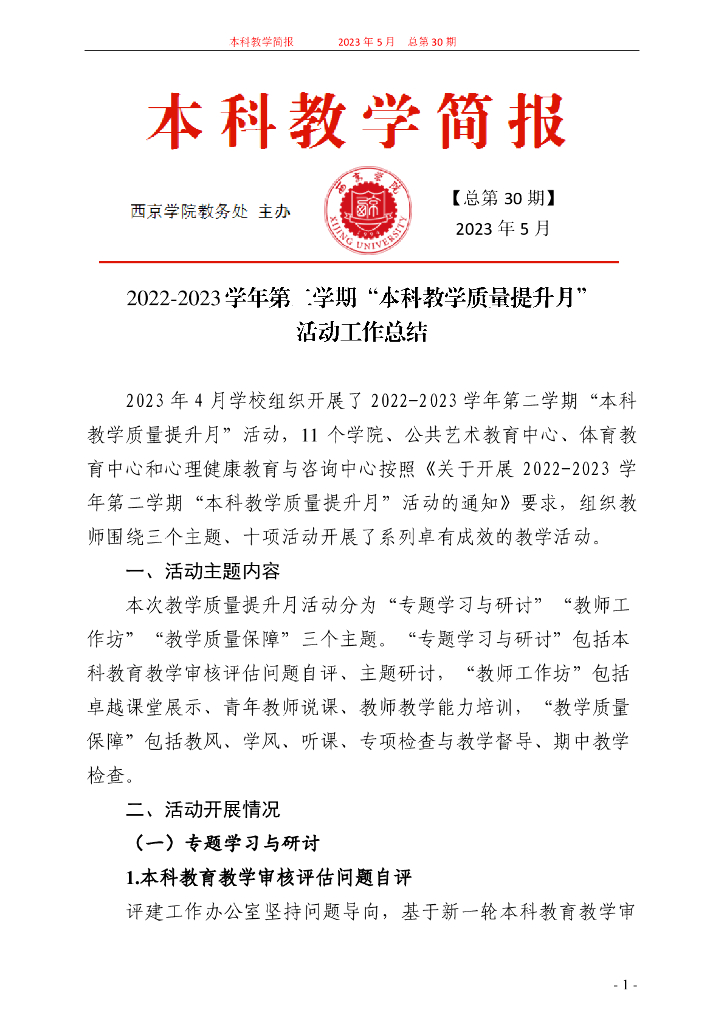 西京学院教务处2022-2023学年第二学期“本科教学质量提升月活动工作总结(总第30期).pdf