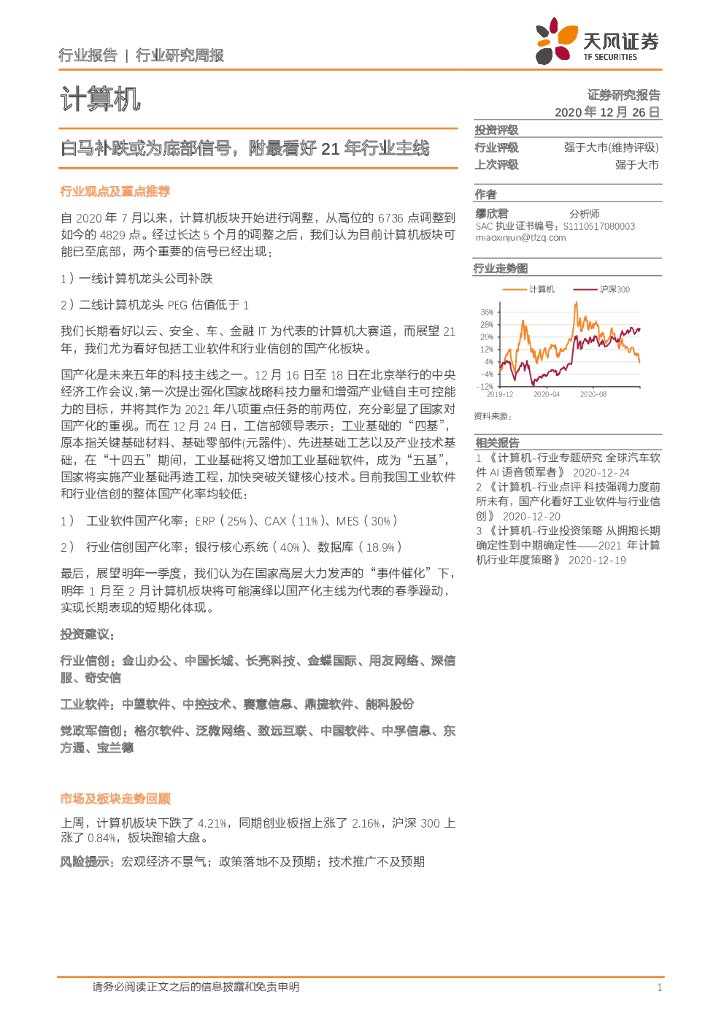 天风证券:计算机行业研究周报:白马补跌或为底部信号,附最看好21年行业主线.pdf