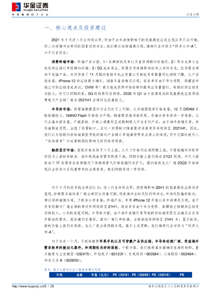 华金证券:电子元器件:2021年1月投资策略:关注去年Q1低基数效应,半导体、面板持续上行.pdf