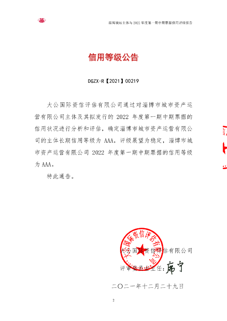 大公:淄博市城市资产运营有限公司主体信用评级报告.pdf