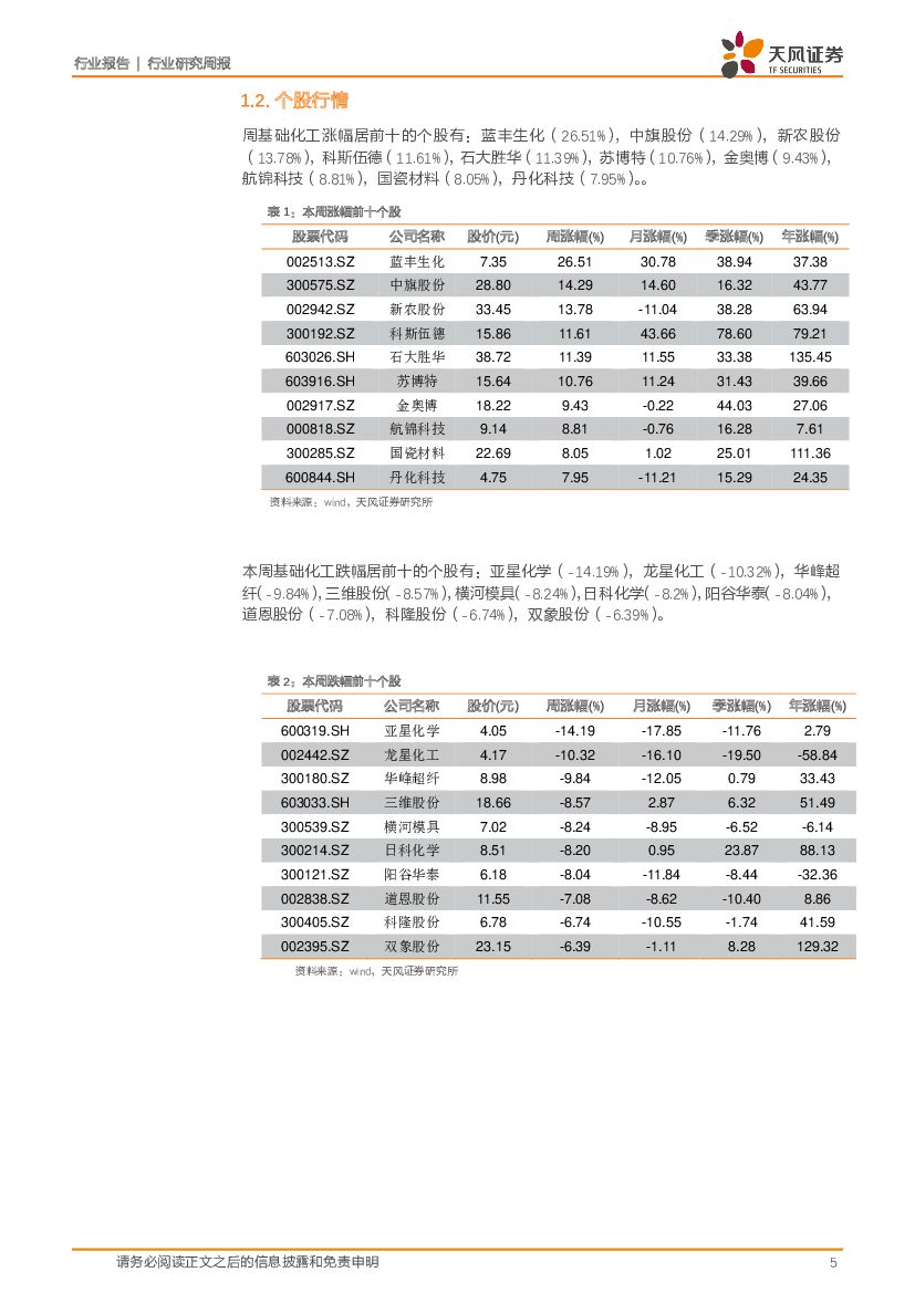 天风证券:化工行业研究周报:化工品多数弱势运行,橡胶产品价格上涨.pdf
