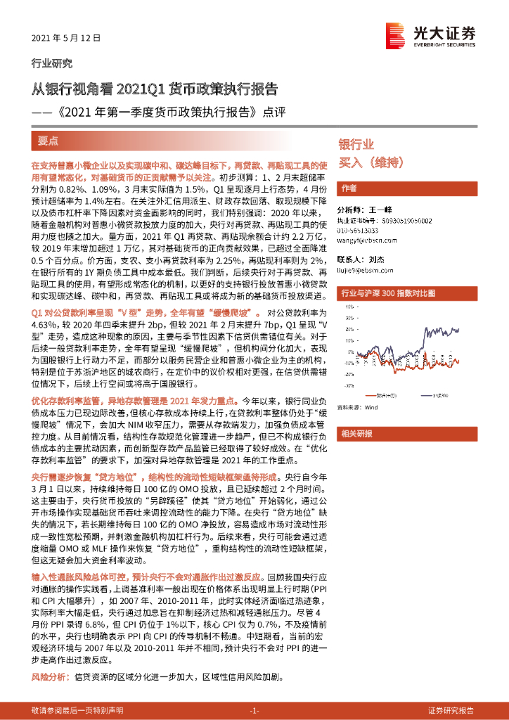 光大证券:银行业:《2021年第一季度货币政策执行报告》点评-从银行视角看2021Q1货币政策执行报告.pdf