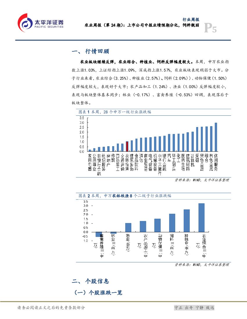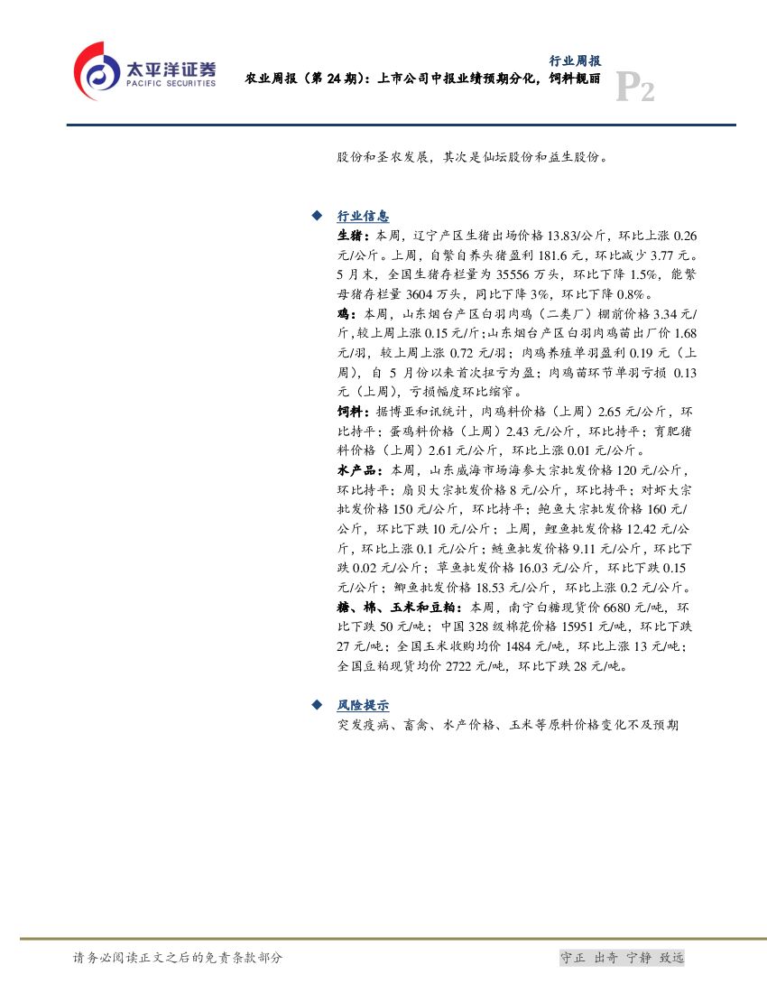 太平洋证券:农业周报(第24期):上市公司中报业绩预期分化,饲料靓丽.pdf