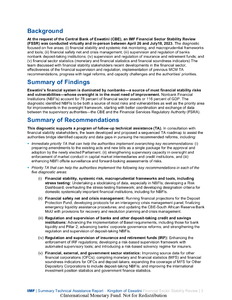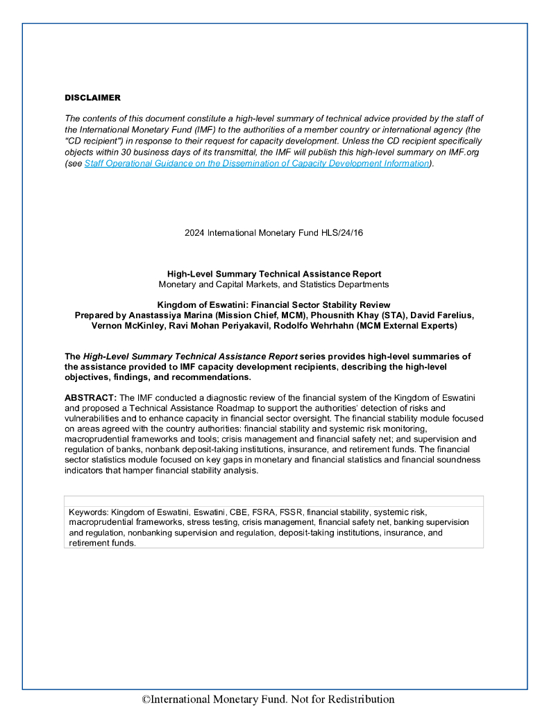 国际货币基金组织:2024斯威士兰王国技术援助报告金融部门稳定性审查报告(英文版).pdf