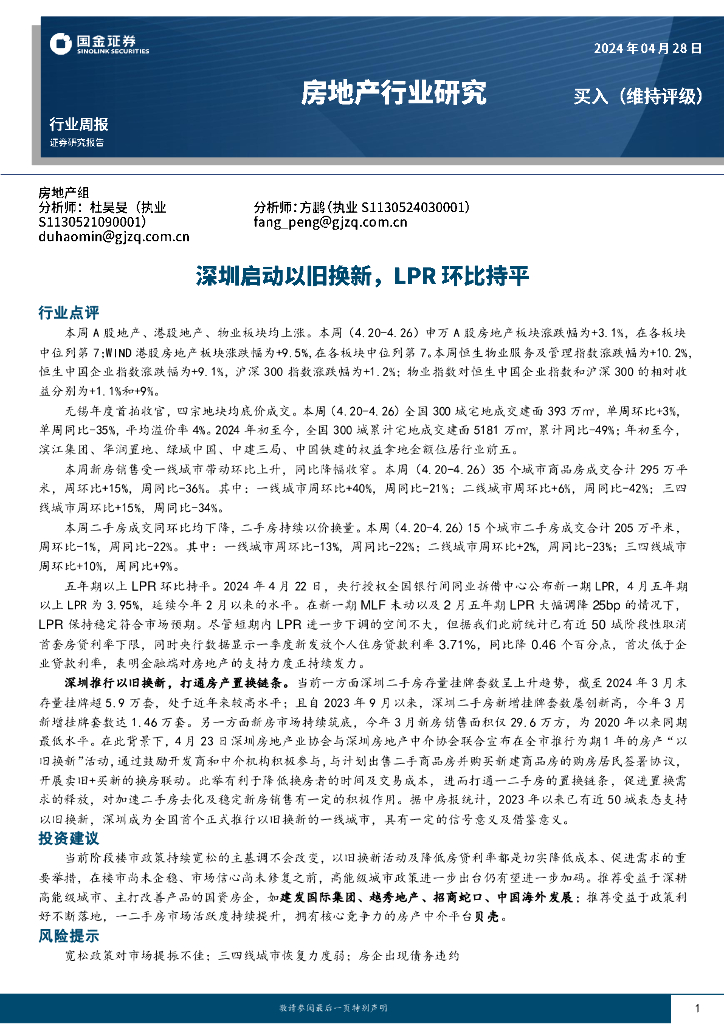 国金证券:房地产行业研究:深圳启动以旧换新,LPR环比持平.pdf