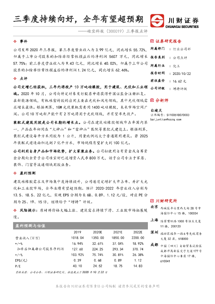 川财证券:硅宝科技(300019)-三季报点评:三季度持续向好,全年有望超预期.pdf