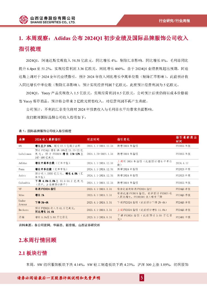 山西证券:纺织服装行业周报:Adidas上调2024年业绩预期,国际运动品牌收入指引梳理.pdf