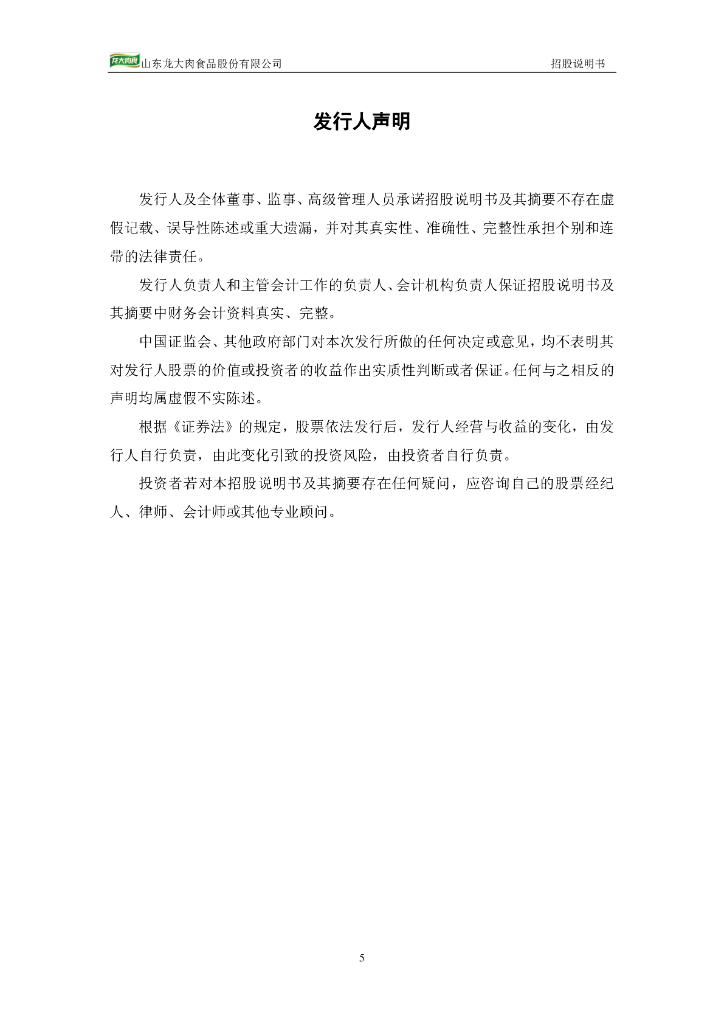 山东龙大肉食品股份有限公司深交所主板IPO上市招股说明书.pdf
