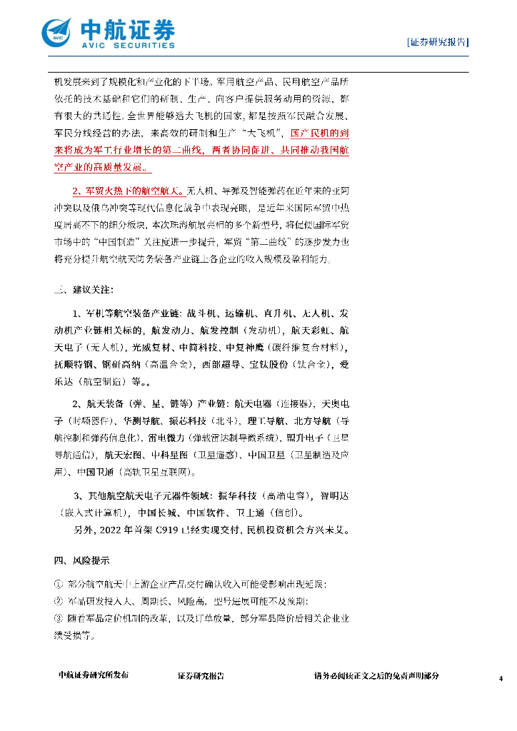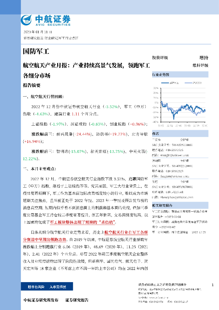 中航证券:航空航天产业月报:产业持续高景气发展,领跑军工各细分市场.pdf