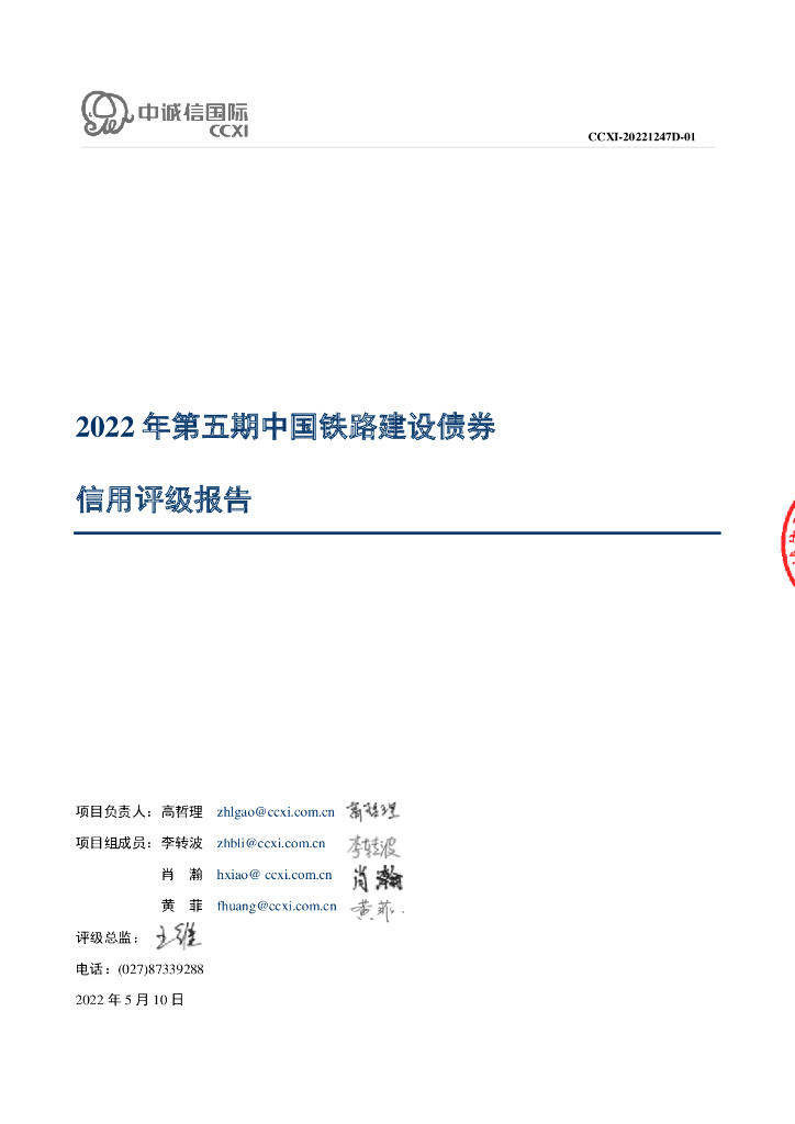 中诚信:2022年第五期中国铁路建设债券信用评级报告.pdf
